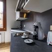 Il recente restauro dell’appartamento ha riportato alla luce una bella balaustra in marmo che divide il soggiorno arredato in stile moderno, dalla camera da letto matrimoniale arredata con mobili in legno. Il risultato è un meraviglioso mix tra antico e moderno. Il Ca’ dei Carmini – Ancient Suite è composto dal soggiorno con divano, una camera matrimoniale con meravigliosa vista su un tipico canale veneziano, una cucina con tavolo da pranzo completa di tutti i comfort e un bagno con doccia.