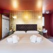 Equipped with a single entrance, the apartment is accessed directly from the street. On the ground floor we find the first of the two double bedrooms, tastefully decorated and equipped with the necessary comforts including a complete en suite bathroom.