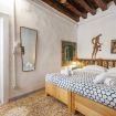 La struttura della casa, le travature in legno e il pavimento in mosaico alla veneziana, sono stati ripuliti e restaurati, rispettando la tipologia originaria. Il fascino aggiuntivo va ricercato nei dipinti e nelle sculture, opere di chi un tempo trasformò questa abitazione in un rifugio lagunare d’artista. Lasciarle in casa è per noi un atto di affetto nei suoi confronti e di fiducia nei nostri ospiti.
