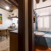 Caldo, allegro e accogliente, l' appartamento si trova al primo piano ed è composto da: una cucina ben equipaggiata ma tradizionale, una camera dotata di letto matrimoniale, un soggiorno con finestra a bifora e un bagno con una piccola vasca dotata di doccia.