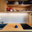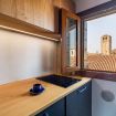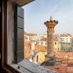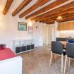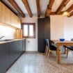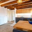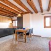 Questo moderno appartamento è composto da una luminosa e confortevole zona giorno con travi a vista, un angolo cottura attrezzato, una camera matrimoniale e un bagno finestrato con doccia. La casa è spaziosa e proprio sopra al mercato di Rialto; dalle finestre si ha una vista sul canale sottostante e si può scorgere il Canal Grande.