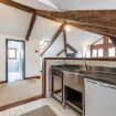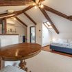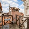Questo moderno appartamento, situato al terzo piano, è composto da una luminosa zona giorno con travi a vista e lucernari che illuminano lo spazio, un angolo cottura attrezzato di tutto il necessario per cucinare, un comodo letto matrimoniale, un bagno con vasca e una meravigliosa terrazza in legno, in veneziano ''altana'', con vista sui tetti veneziani e sulla chiesa adiacente all'appartamento, perfetta per la colazione o per un aperitivo al tramonto.